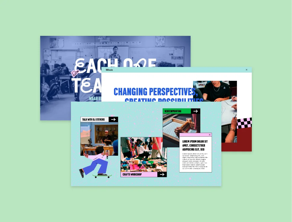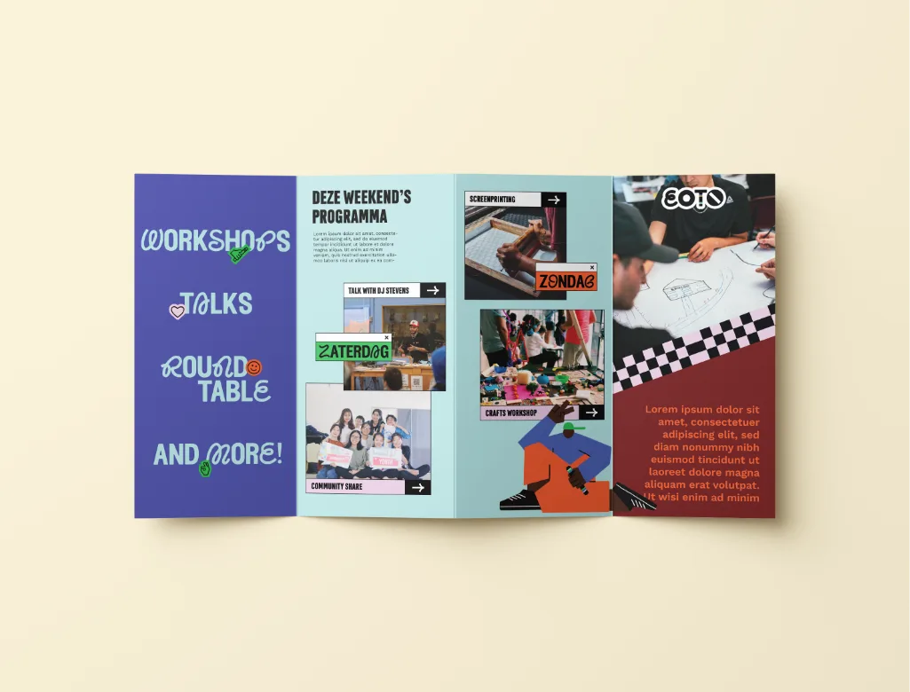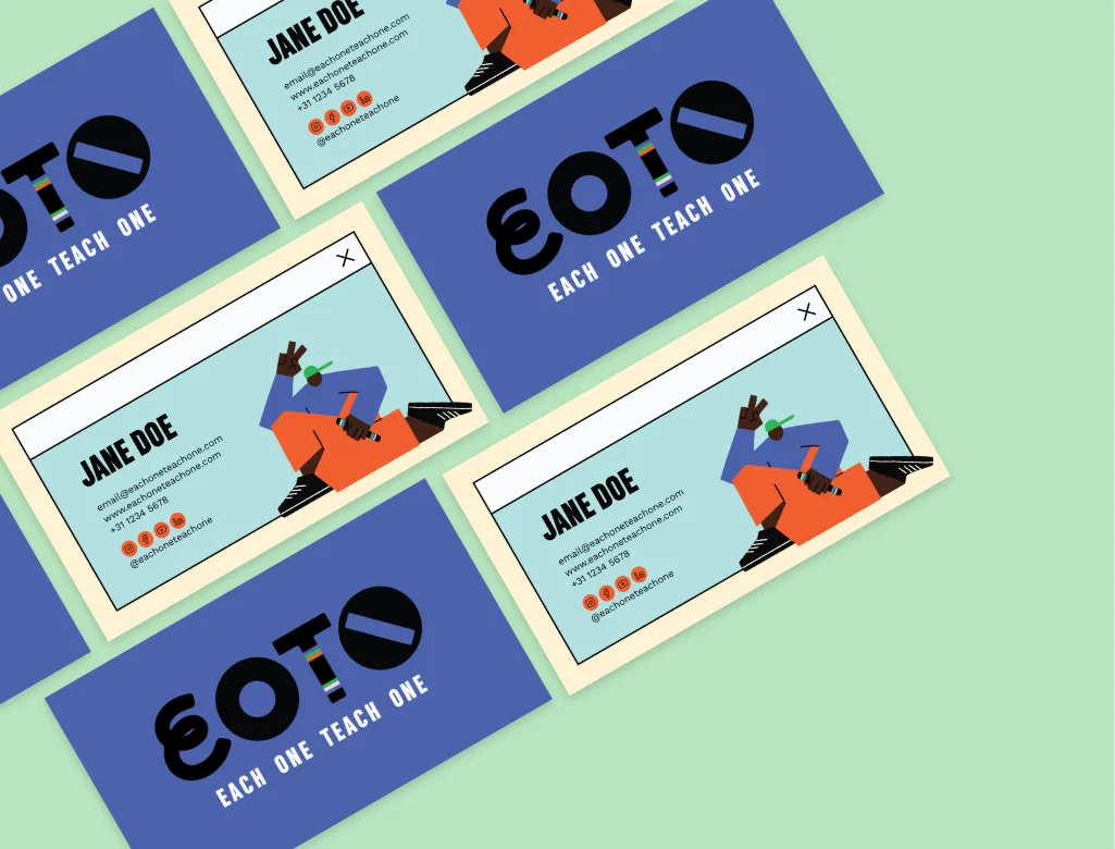 Onze studio werd gevraagd om de positionering, strategie, concept & grafisch ontwerp te ontwikkelen voor EOTO (Each One Teach One), een educatief programma voor middelbare scholieren voor het nieuwe vak Wereldburgerschap, met zowel 1-daagse workshops als meerdaagse bootcamps en lerarenopleidingen voor het vak leraren en scholen in Nederland. Het doel was om een merk te creƫren dat sterk genoeg is om landelijk uit te rollen en de 1e keuze te worden in het snelle interactieve landschap van aanbieders op de markt. De combinatie van verschillende fonts in het logo, elk met een eigen vorm en "persoonlijkheid", is bedoeld om het samenkomen van verschillende mensen, verschillende achtergronden en cultuur weer te geven. Een gedurfde en visueel onthullende aanpak. Waar iedereen samenkomt. De T in het EOTO-logo is ook ontworpen voor gebruik op een praatstok/baton, een krachtig symbool van gemeenschap en wederzijds respect. Het resultaat is een kleurrijke, trendy en jong-sprekende identiteit die de multiculturele vertegenwoordiging van niet alleen hun doelgroep goed weergeeft, maar ook hoe we de wereld een betere en meer inclusieve plek kunnen maken.