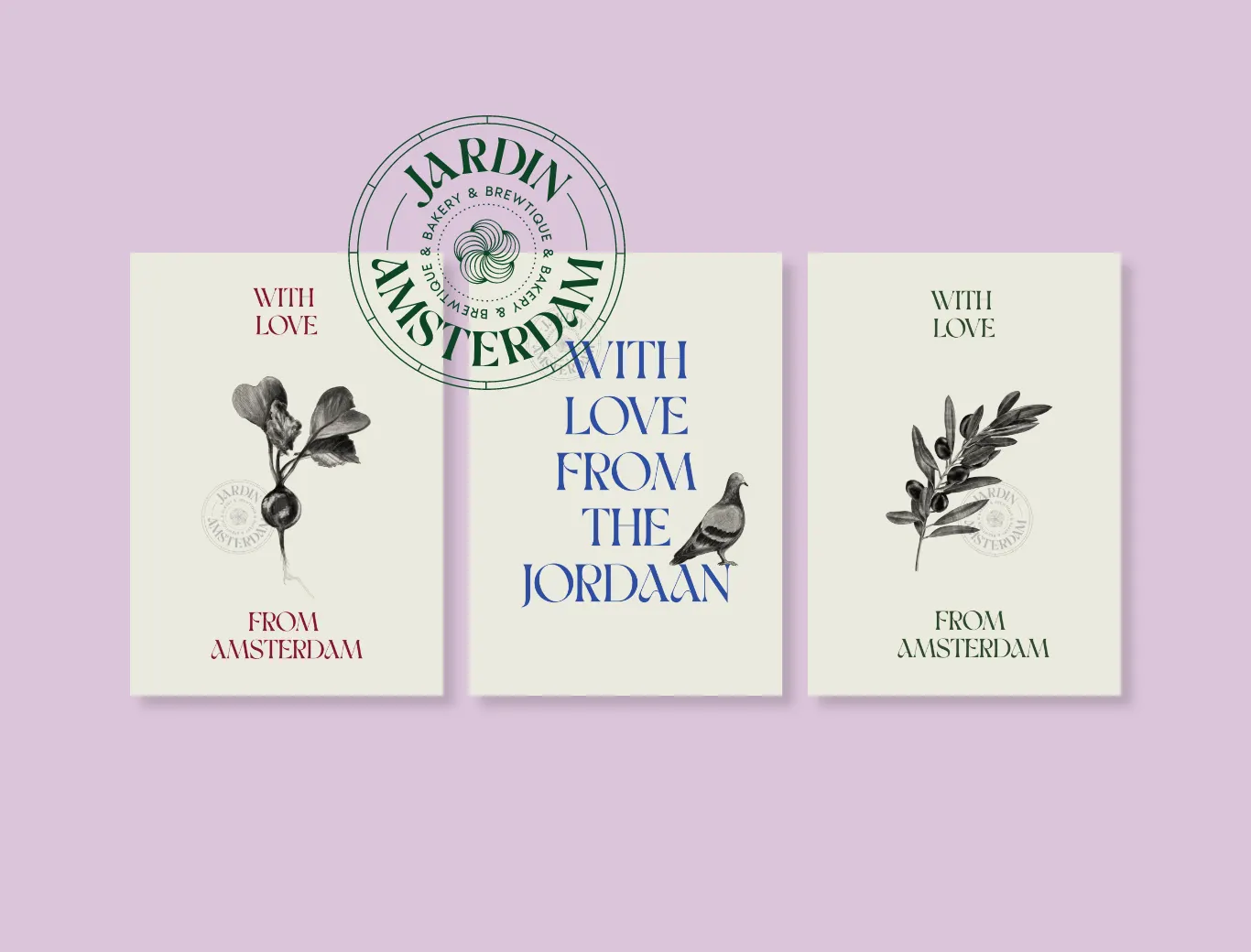 We doen nog altijd niks liever dan lekkere concepten en designs maken voor de horeca! Deze mooie zaak opent begin december z’n deuren aan de Brouwersgracht en de naam “Jardin” zegt het al: middenin de Amsterdamse Jordaan dus. Je vind hier onder andere kunstig belegde zuurdesemboterhammen – tartines- babka’s- en ander lekkers gecombineerd met mooie lokale merken, wilde pluk thee en Amsterdams lekkerste koffie. Wij ontwikkelden een huisstijl met logo, beeldmerk, typografie en kleurenpalet die passen bij de visie en missie van onze klant en creëerden en set illustraties die we gebruikten voor het ontwerp van de signing en belettering, de verpakkingen en menu’s die we met hulp van @thebrandingclubcom lieten maken. Fun!