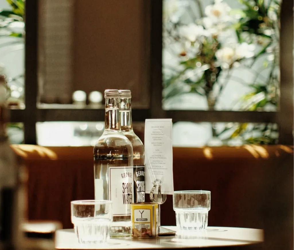 Voor Amsterdam’s lievelings bistro: “George” met filialen aan de haven, de PC Hooft en in Oud-Zuid maakten wij een ontwerp voor mooie waterflessen. Plat of bruisend?! Met een spot UV lakje en zilveren randje op het etiket vinden wij ze helemaal Oud-Zuid-Worthy.